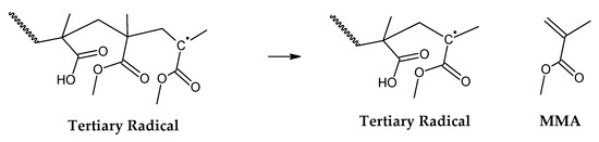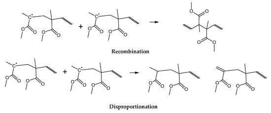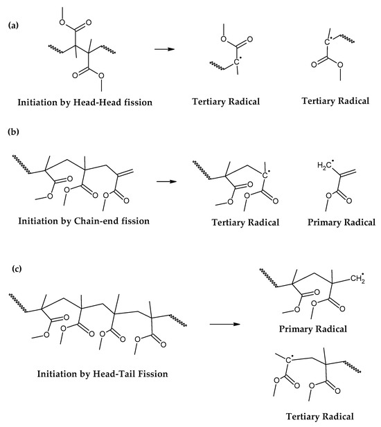 42]. FRP-made polymers degrade at lower temperatures (140–200 °C), but this type of termination is not present in anionic polymerized PMMA, where propagation occurs almost exclusively by H-T propagation, termination only occurs deliberately and no H-H linkages are formed [