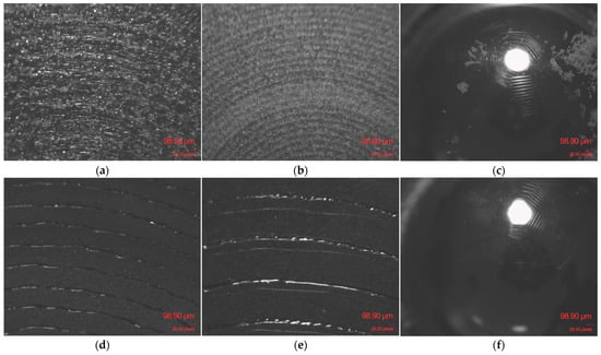 As a final step, complementary microscopic analysis of worn surfaces was performed using a digital stereo optical microscope (NOVEX RZT-SF, Euromex Microscopen B. V., Duiven, The Netherlands), equipped with a CMEX DC.1300× USB camera (Euromex Microscopen B. V., Duiven, The Netherlands) and ImageFocus v 2.5 software (Euromex Microscopen B. V., Duiven, The Netherlands). Specimens were secured in an adjustable holder, and images were captured at a total magnification of 20× (10× objective with 2× magnification base). This facilitated the evaluation of surface appearance before and after tribological testing, specifically for observing if wear tracks and associated damage appear.