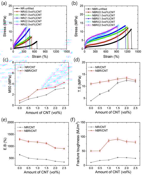 | NBR/CNT | CNT | 39,125 | 1000–1220% | Solvent blending and vulcanization at 15 0°C | Present work |
