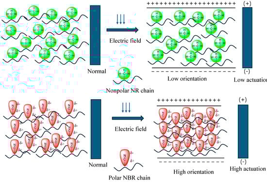 - Suresh, J.N.; Arief, I.; Naskar, K.; Heinrich, G.; Tahir, M.; Wießner, S.; Das, A. The Role of Chemical Microstructures and Compositions on the Actuation Performance of Dielectric Elastomers: A Materials Research Perspective. Nano Select 2023, 4, 289–315. [Google Scholar] [CrossRef]