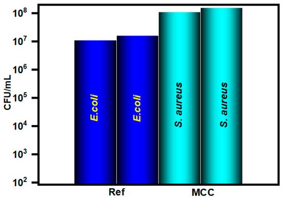 Figure 10. Antibacterial activity against E. coli and S. aureus on MCC-coated membrane.