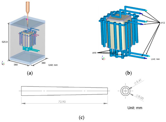 Geometric dimensions: (a) mold; (b) cooling channel; (c) runner.