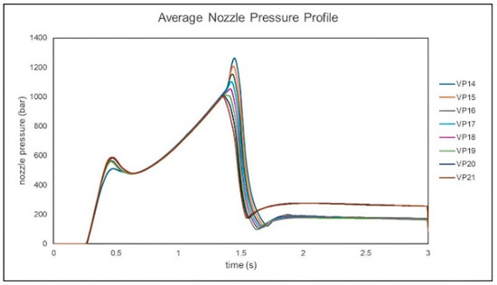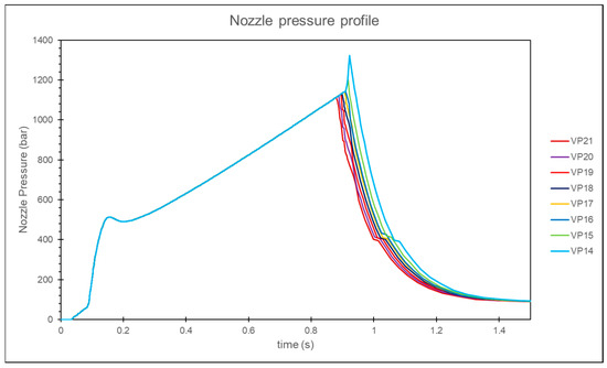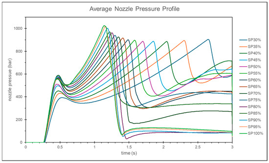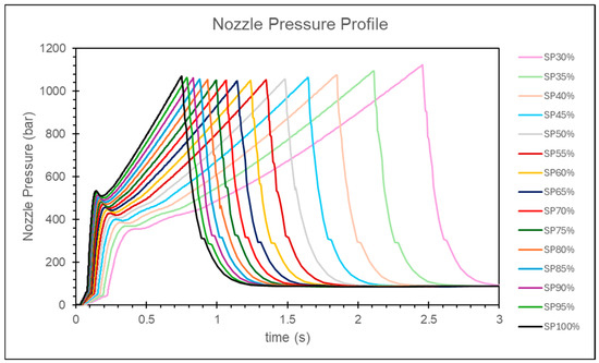 Experimental nozzle pressure curves at different injection speeds.