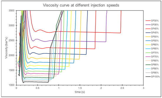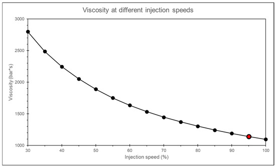 where Visappropriate is the relative viscosity value at convergence, Vismin is the minimum relative viscosity during the injection speed experiment, and Vismax is the maximum relative viscosity during the injection speed experiment.