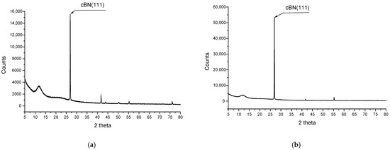 X-ray diffraction analysis certifies the chains’ formation by aligning the BN platelets and carbon microfibers in the electrical field direction. The results are presented in Figure 13 for R1 and R2 (containing BN platelets only) and Figure 14 for R5 and R6 (containing BN platelets and carbon microfibers).