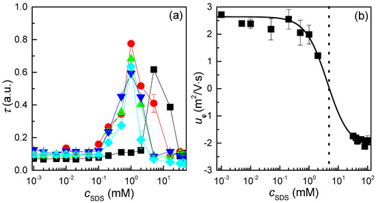 - Mészáros, R.; Thompson, L.; Bos, M.; Varga, I.; Gilányi, T. Interaction of Sodium Dodecyl Sulfate with Polyethyleneimine: Surfactant-Induced Polymer Solution Colloid Dispersion Transition. Langmuir 2003, 19, 609–615. [Google Scholar] [CrossRef]