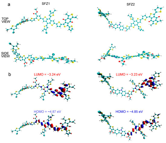 (a) The optimized conformations and (b) HOMO and LUMO of SFZ1 and SFZ2.