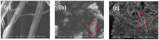 SEM images of (a) Pure-Cell, (b) Cell-Cl, and (c) Cell-Jef148.