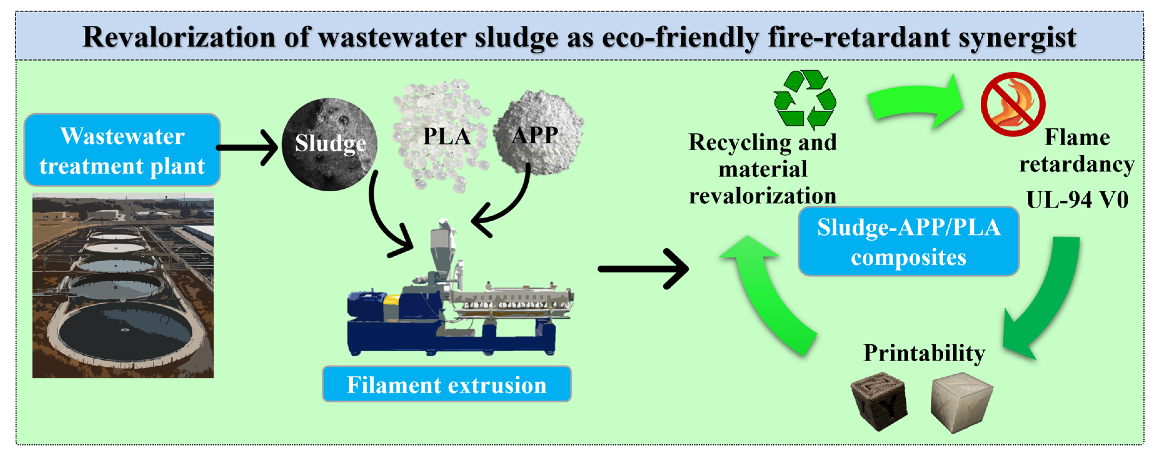 - Kim, N.K.; Bhattacharyya, D.; van Loosdrecht, M.; Lin, Y. Enhancement of fire resistance and mechanical performance of polypropylene composites containing cellulose fibres and extracellular biopolymers from wastewater sludge. Polym. Test. 2023, 127, 108185. [Google Scholar] [CrossRef]