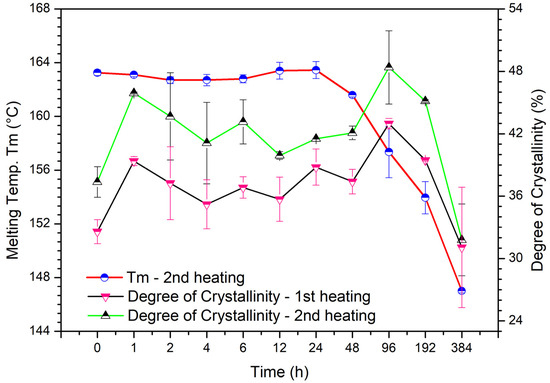 - Rabello, M.; White, J. Crystallization and Melting Behaviour of Photodegraded Polypropylene — I. Chemi-Crystallization. Polymer 1997, 38, 6379–6387. [Google Scholar] [CrossRef]