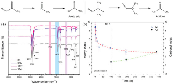 - Rouillon, C.; Bussiere, P.-O.; Desnoux, E.; Collin, S.; Vial, C.; Therias, S.; Gardette, J.-L. Is Carbonyl Index a Quantitative Probe to Monitor Polypropylene Photodegradation? Polym. Degrad. Stab. 2016, 128, 200–208. [Google Scholar] [CrossRef]