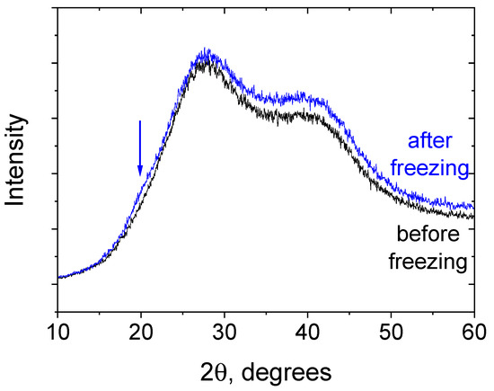 - Ricciardi, R.; Auriemma, F.; De Rosa, C.; Lauprêtre, F. X-Ray Diffraction Analysis of Poly(Vinyl Alcohol) Hydrogels, Obtained by Freezing and Thawing Techniques. Macromolecules 2004, 37, 1921–1927. [Google Scholar] [CrossRef]