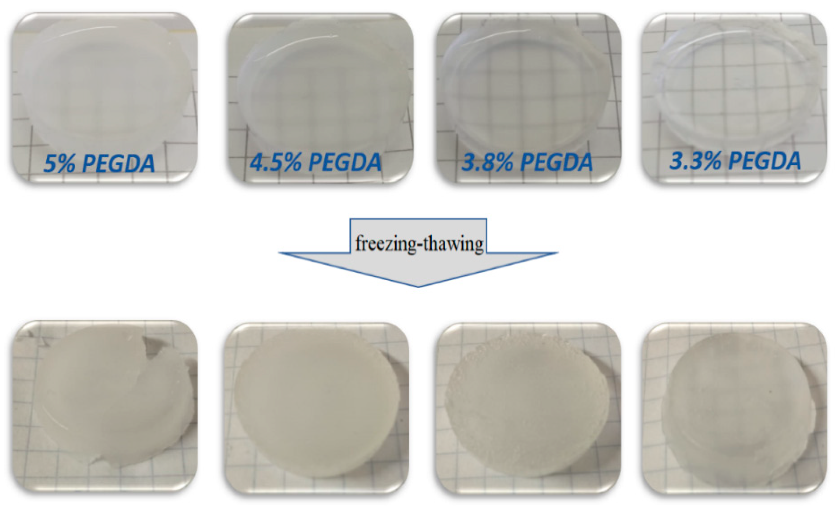 3.2. Effect of PEGMA and PEGDA Concentrations