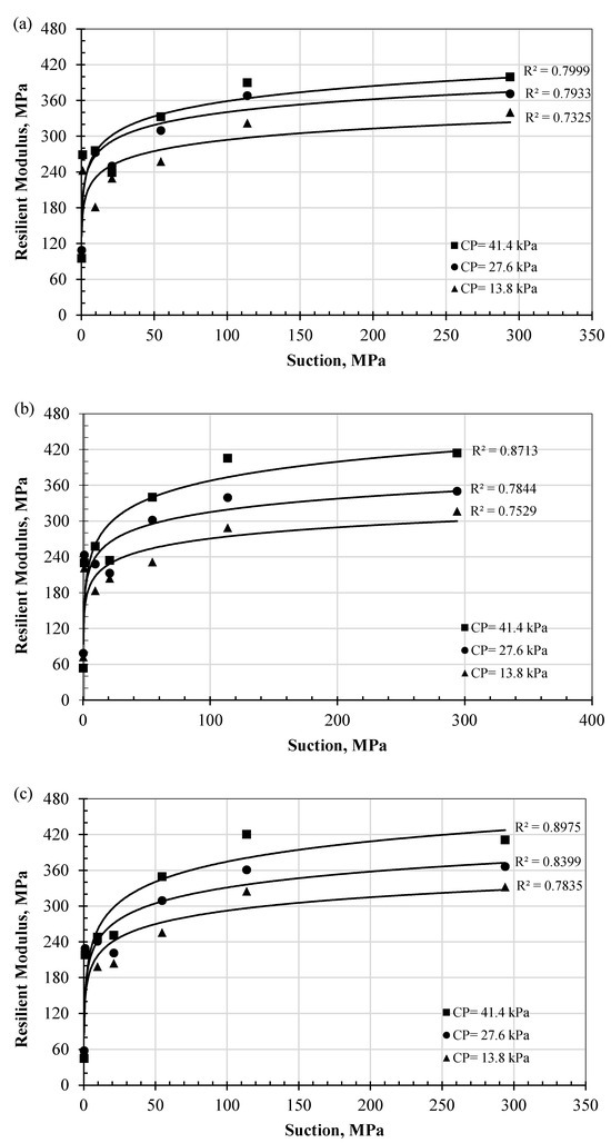 - Banerjee, A.; Puppala, A.J.; Congress, S.S.; Chakraborty, S.; Likos, W.J.; Hoyos, L.R. Variation of Resilient Modulus of Subgrade Soils over a Wide Range of Suction States. J. Geotech. Geoenvironmental Eng. 2020, 146, 04020096. [Google Scholar] [CrossRef]