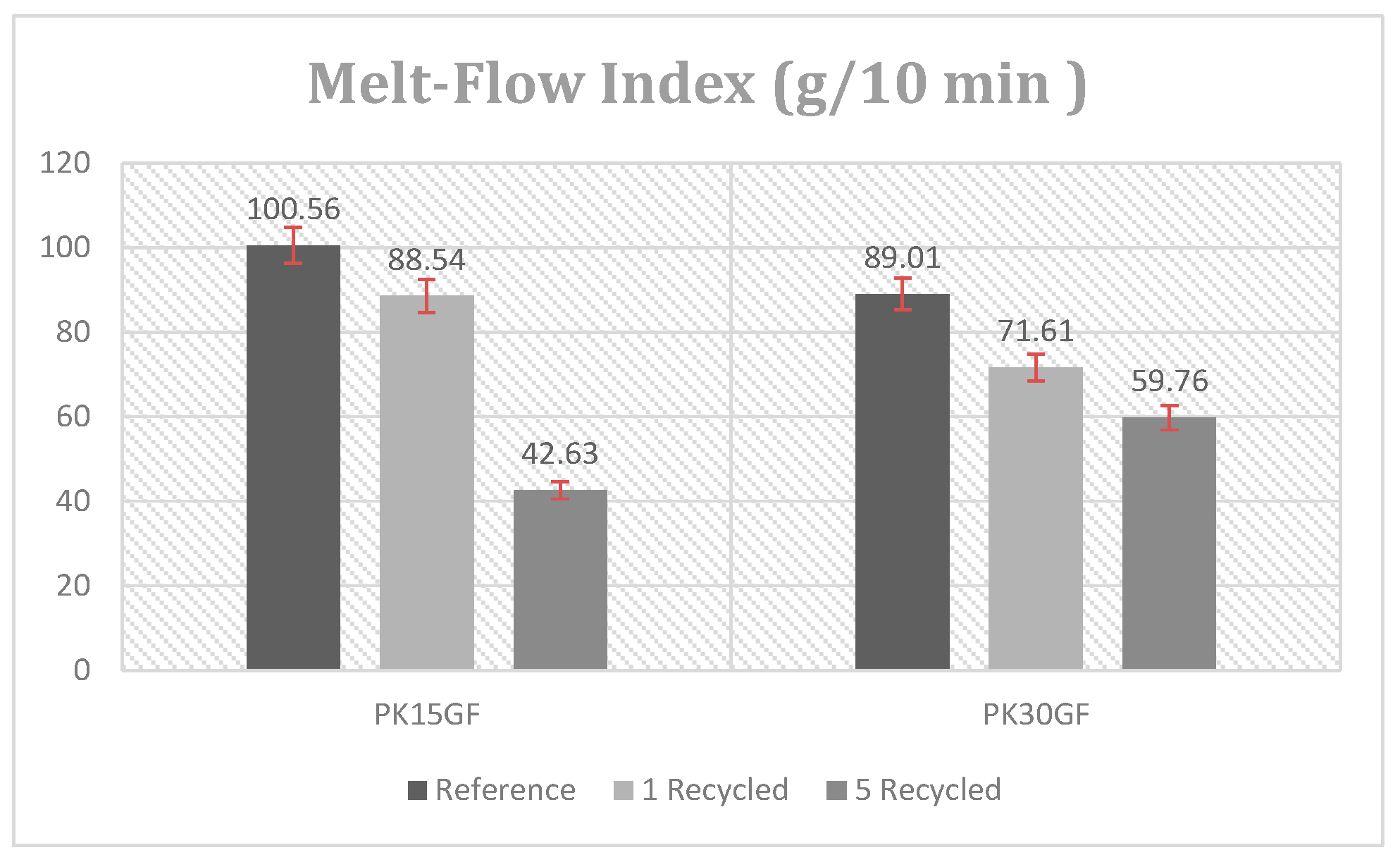 3.5. Melt Flow Property of Recycled PK-15GF and PK-30GF