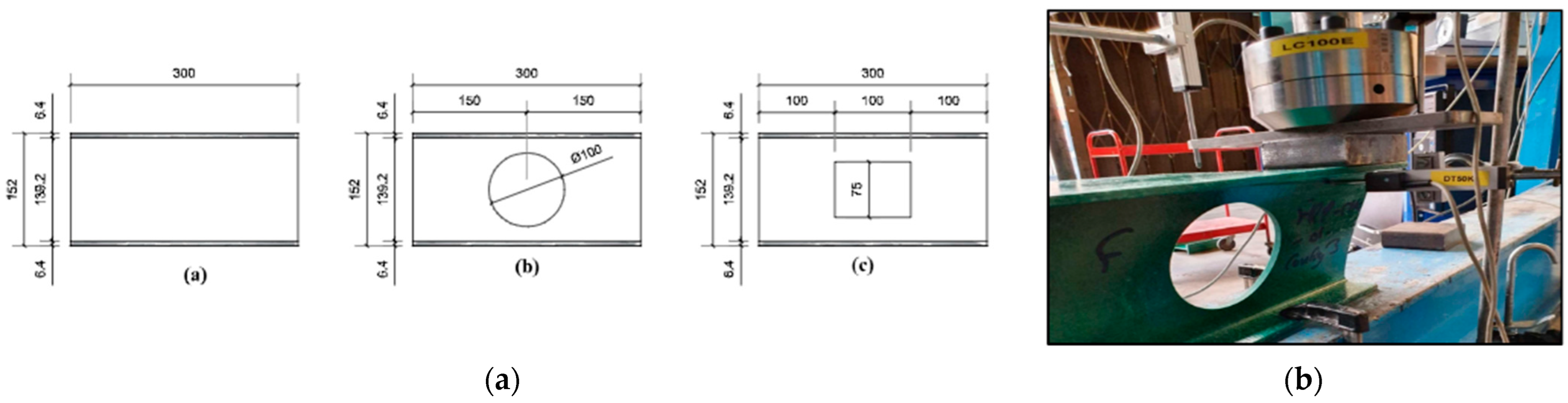 - Gand, A.; Mohammed, M.H.; Jarrouja, S. Performance of perforated FRP stub beams subject to static transverse actions. Eng. Solid Mech. 2020, 8, 105–118. [Google Scholar] [CrossRef]