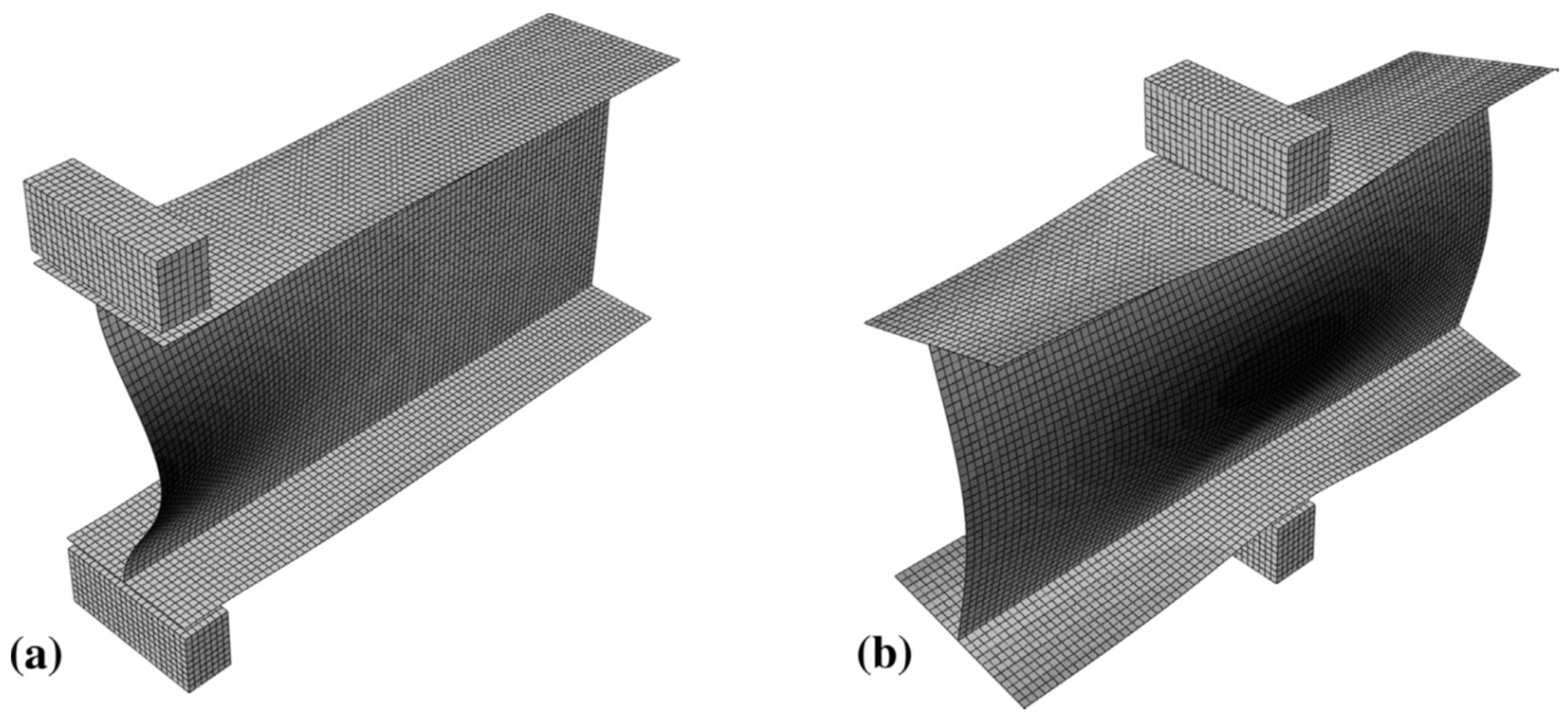 - Ye, Y.-Y.; Gonilha, J.; Silvestre, N.; Correia, J.R. Web-crippling behavior of pultruded GFRP I-section beams under one-flange loading: Computational modelling and parametric study. Compos. Part B Eng. 2025, 307, 112915. [Google Scholar] [CrossRef]