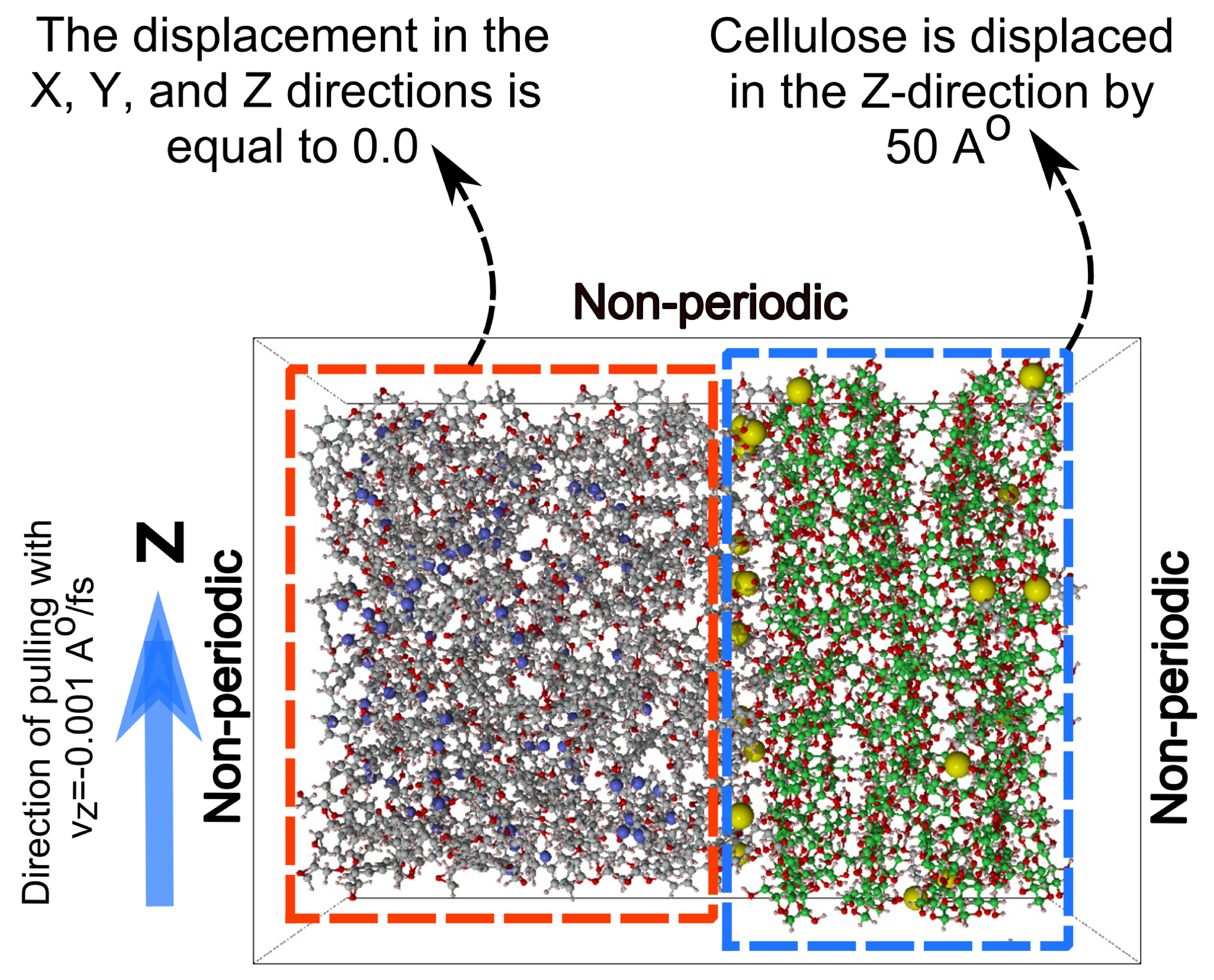 - Jiang, K.; Yan, Z.; Fang, W.; Zhang, Y. Molecular dynamics simulation on tensile behavior of cellulose at different strain rates. Adv. Mater. Sci. Eng. 2023, 2023, 7890912. [Google Scholar] [CrossRef]