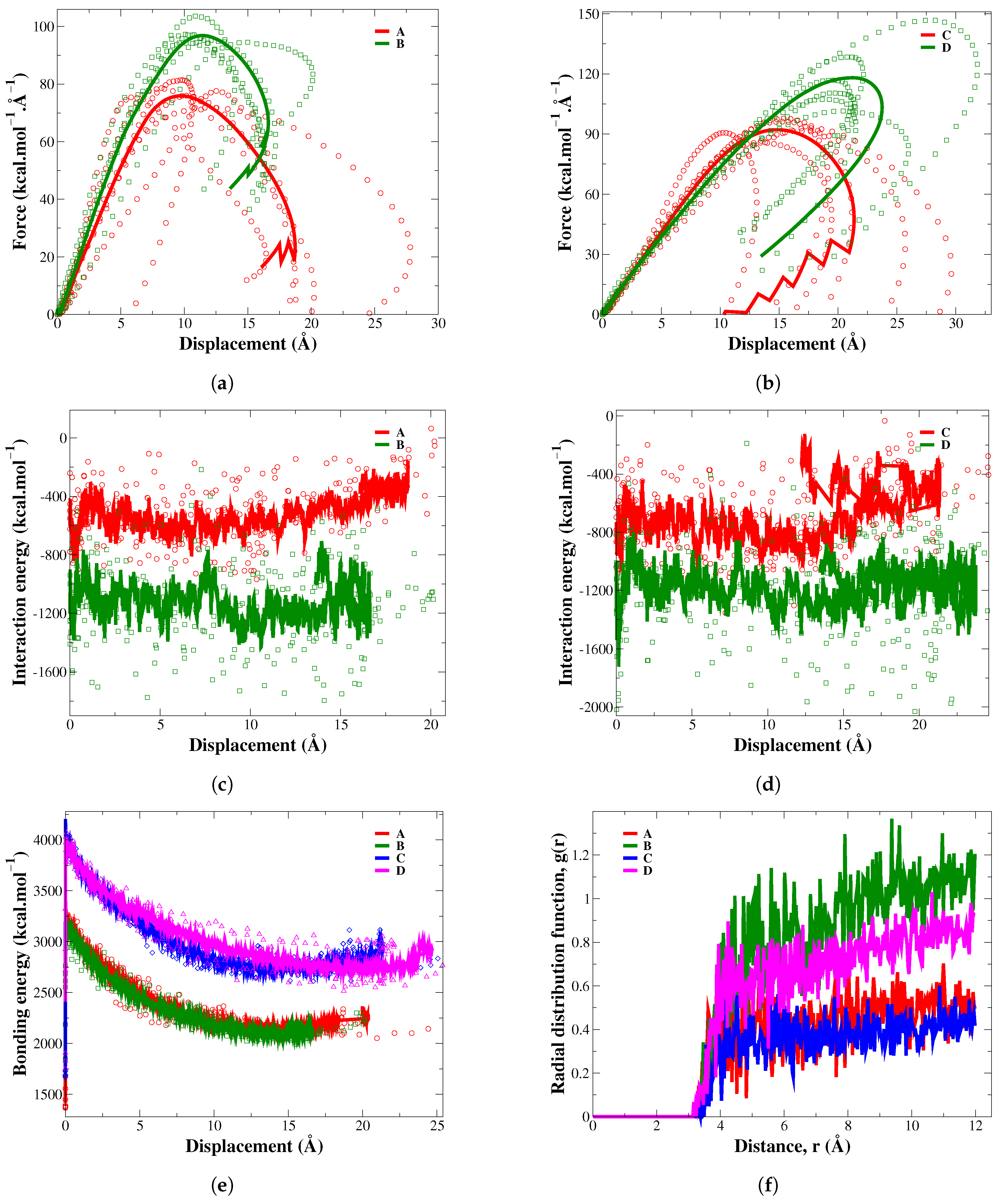 Material | Pulling Force (kcal··) | Interaction Energy (kcal·) | Bonding Energy (kcal·) |