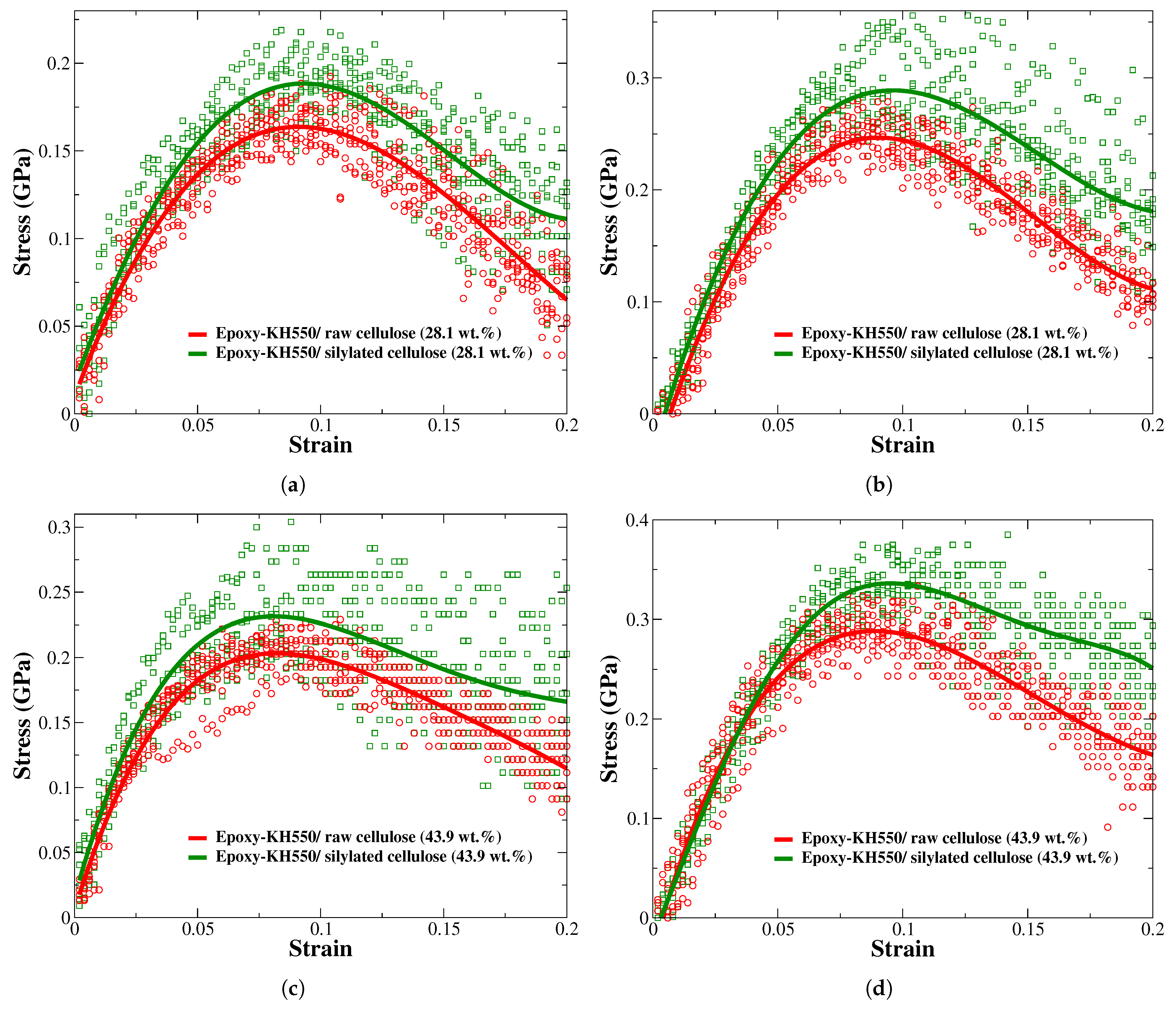 3.3. The Effect of Cellulose Silylation on the Mechanical Properties