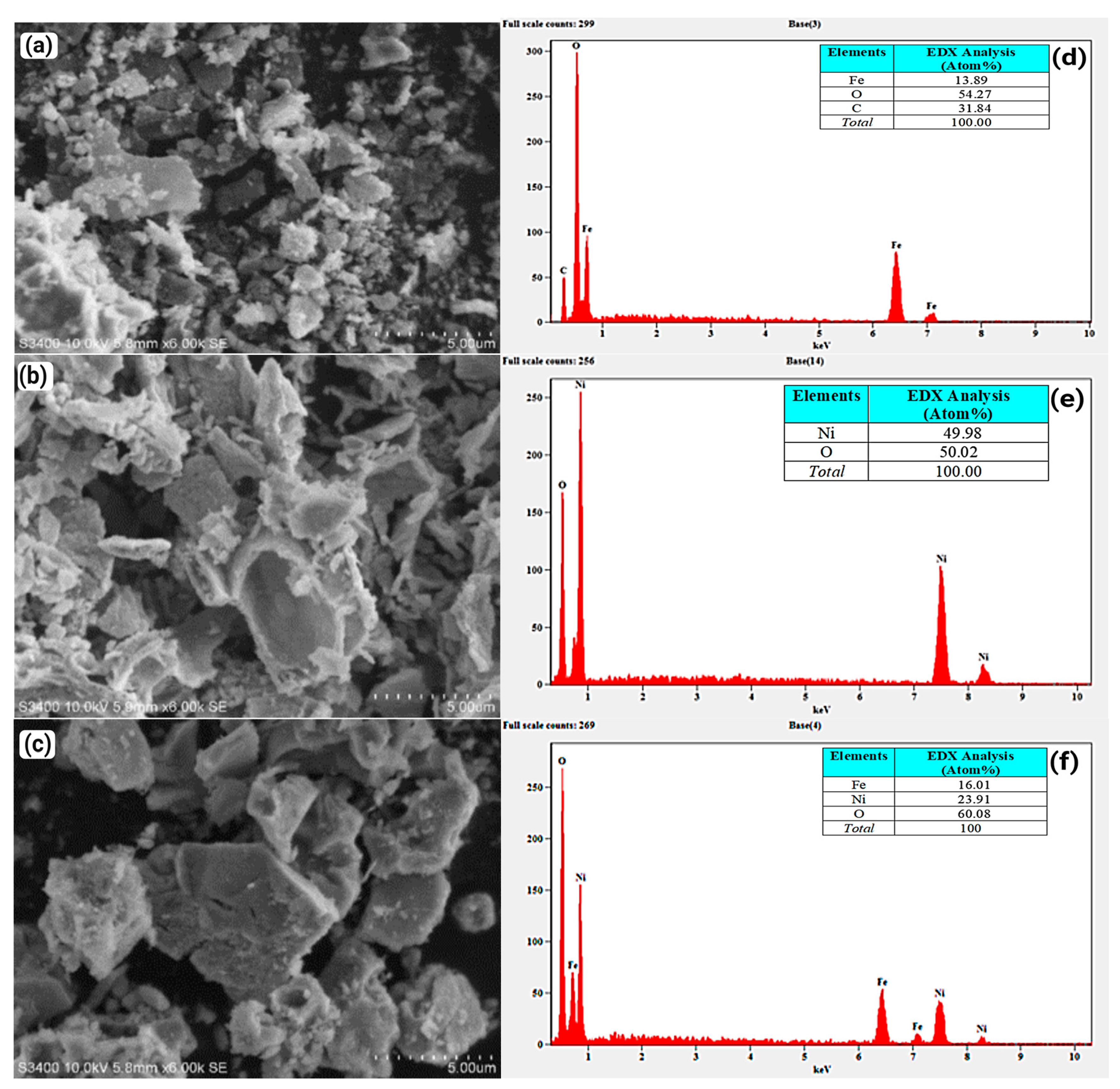 2.2. Preparation of Fe2O3, NiO, NiFe2O4 NPs