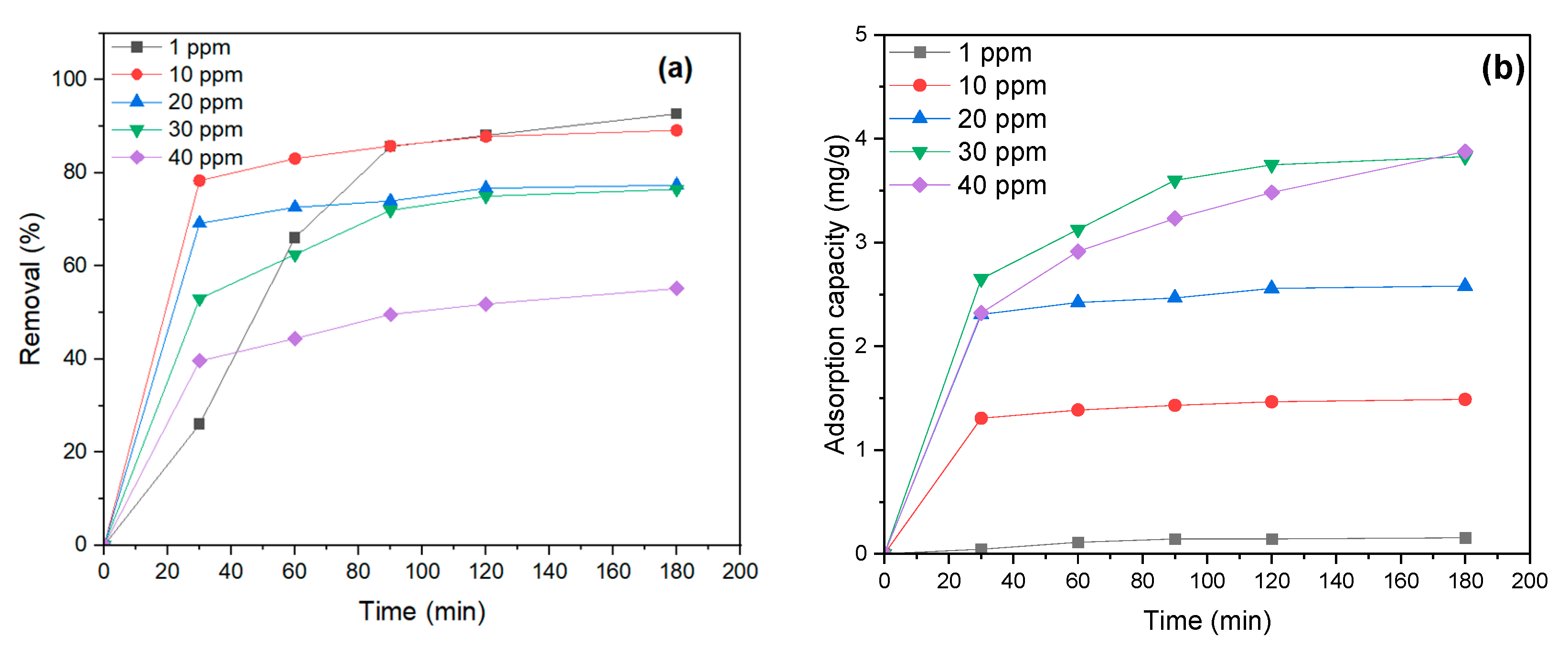 - Hosseinzadeh, H.; Ramin, S. Effective removal of copper from aqueous solutions by modified magnetic chitosan/graphene oxide nanocomposites. Int. J. Biol. Macromol. 2018, 113, 859–868. [Google Scholar] [CrossRef] [PubMed]