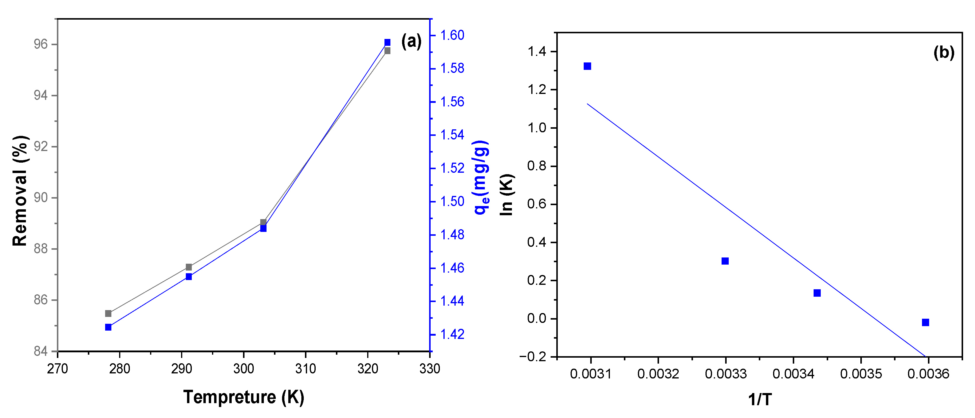 - Mahmoud, D.K.; Salleh, M.A.M.; Karim, W.A.W.A.; Idris, A.; Abidin, Z.Z. Batch adsorption of basic dye using acid treated kenaf fibre char: Equilibrium, kinetic and thermodynamic studies. Chem. Eng. J. 2012, 181–182, 449–457. [Google Scholar] [CrossRef]