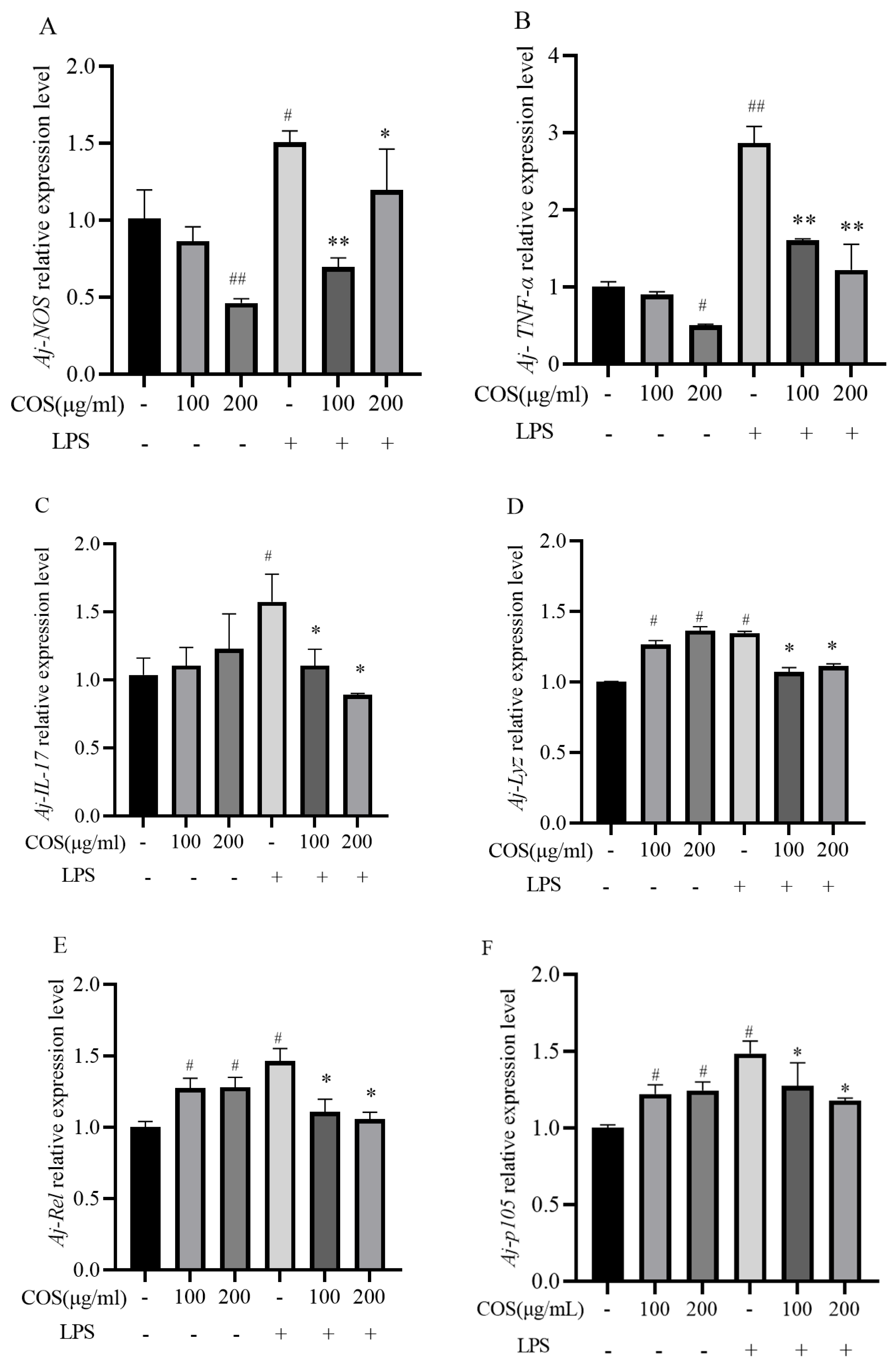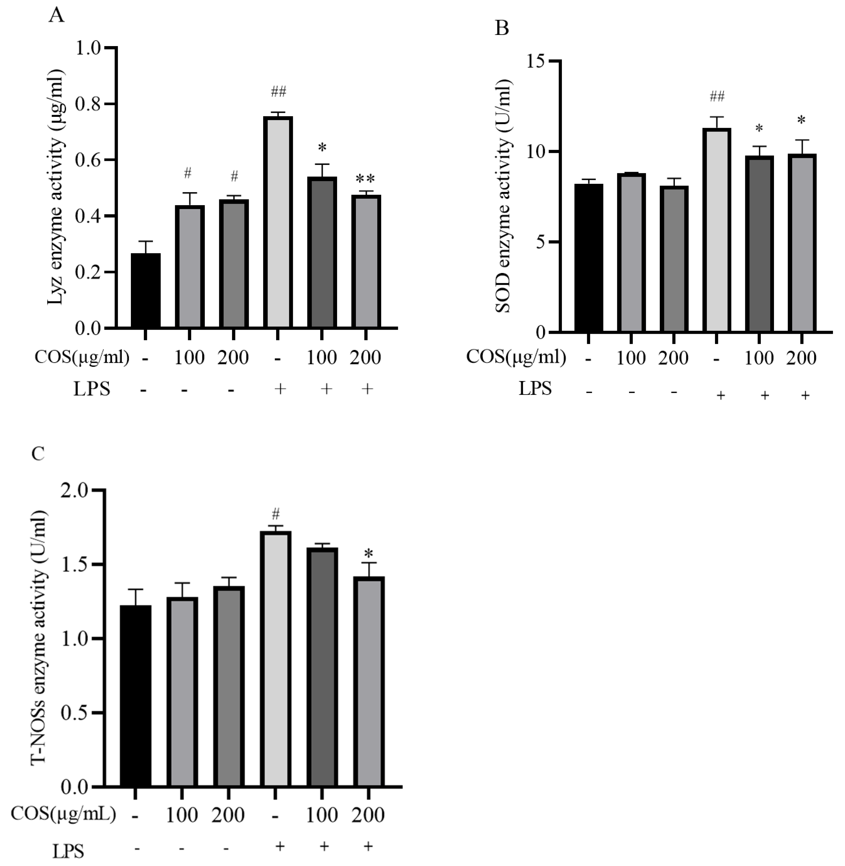 3.3.3. Effect of COS on Enzyme Activity of LPS-Stimulated Sea Cucumber Coelomocytes