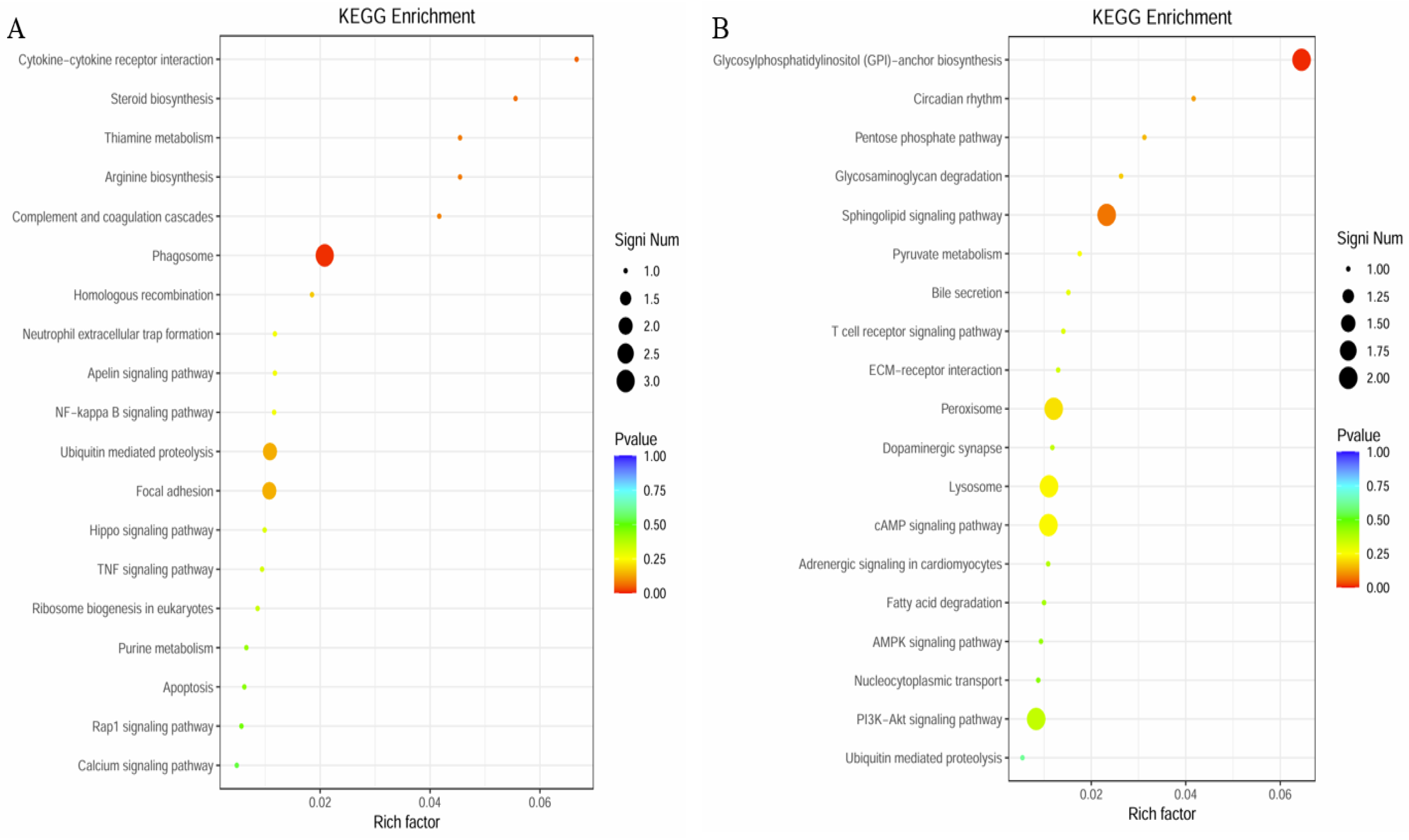 3.4.4. GO and KEGG Enrichment Analysis of DEGs