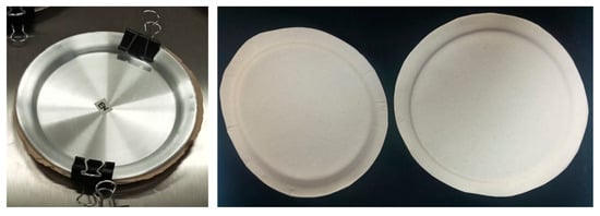 Table 6 presents the barrier properties of the plates: water resistance, grease resistance, and WVTR. The results were compared with those of a commercial tableware plate made of wheat straw.