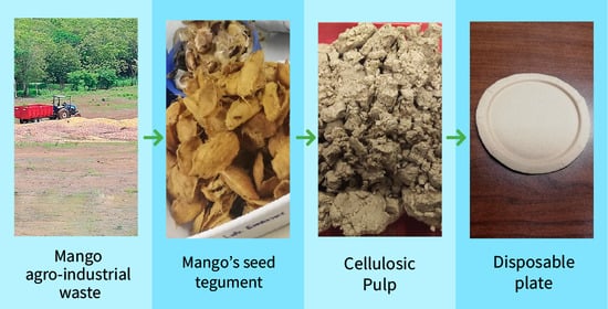40]. We selected formulation 70:30 for the development of plates due to similar values in mechanical properties and a high proportion of mango cellulosic pulp.