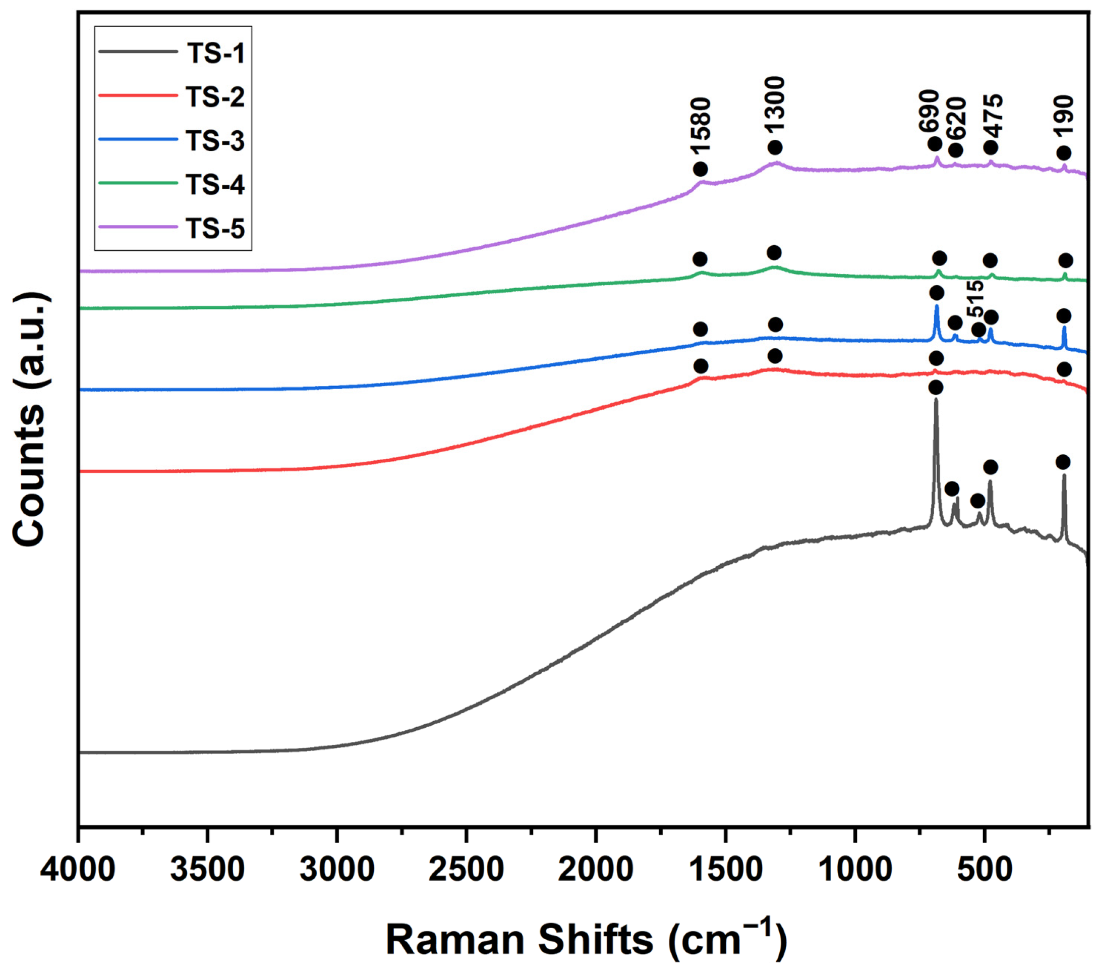 Raman spectra for samples TS-1 through TS-5 were presented in