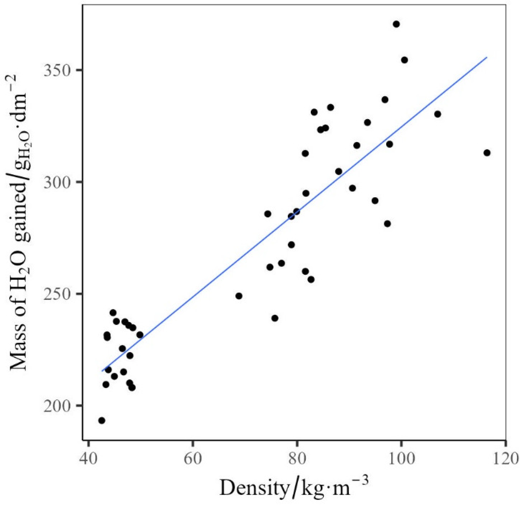 Density was measured from the mass of a dry rebond, and dimensions were measured using calipers to provide the density. All values are quoted in kg·m−3. The mean as well as standard error is reported.