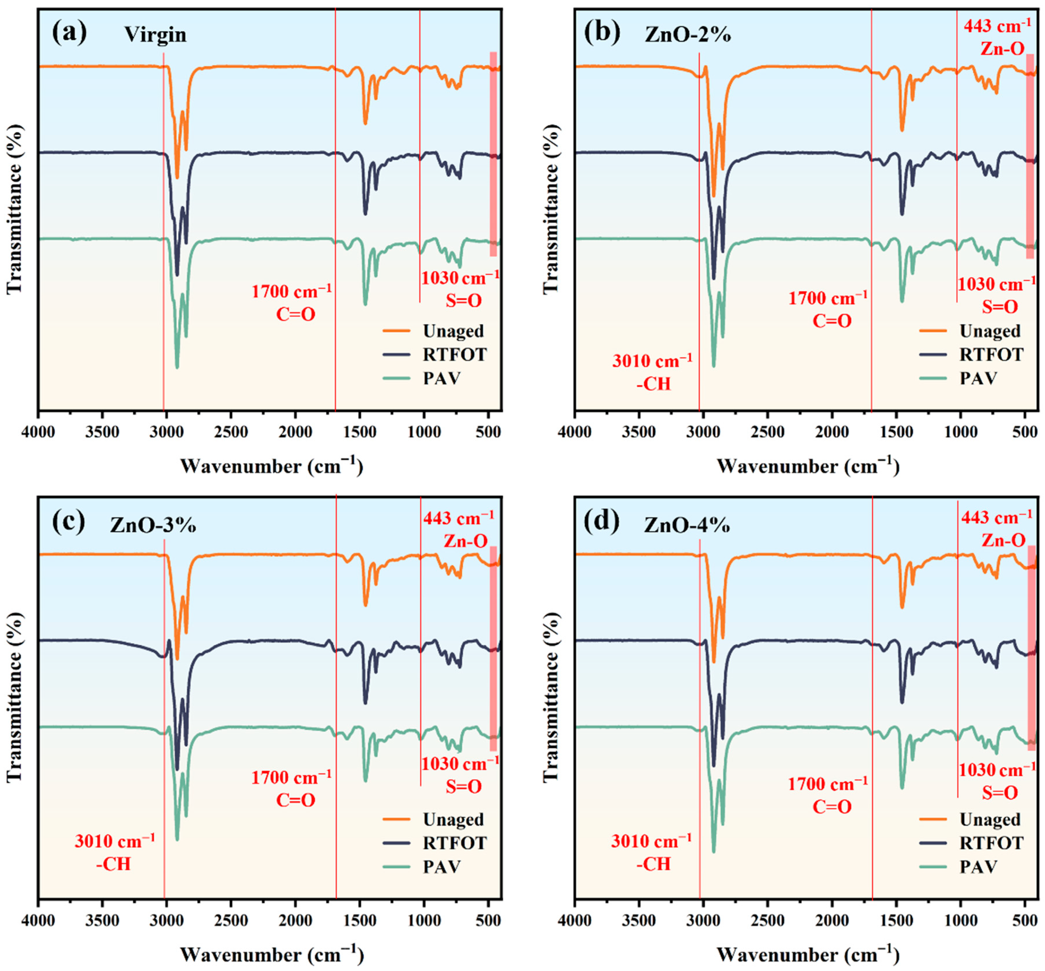 3.2.1. Changes in FTIR of Different Types of Asphalt