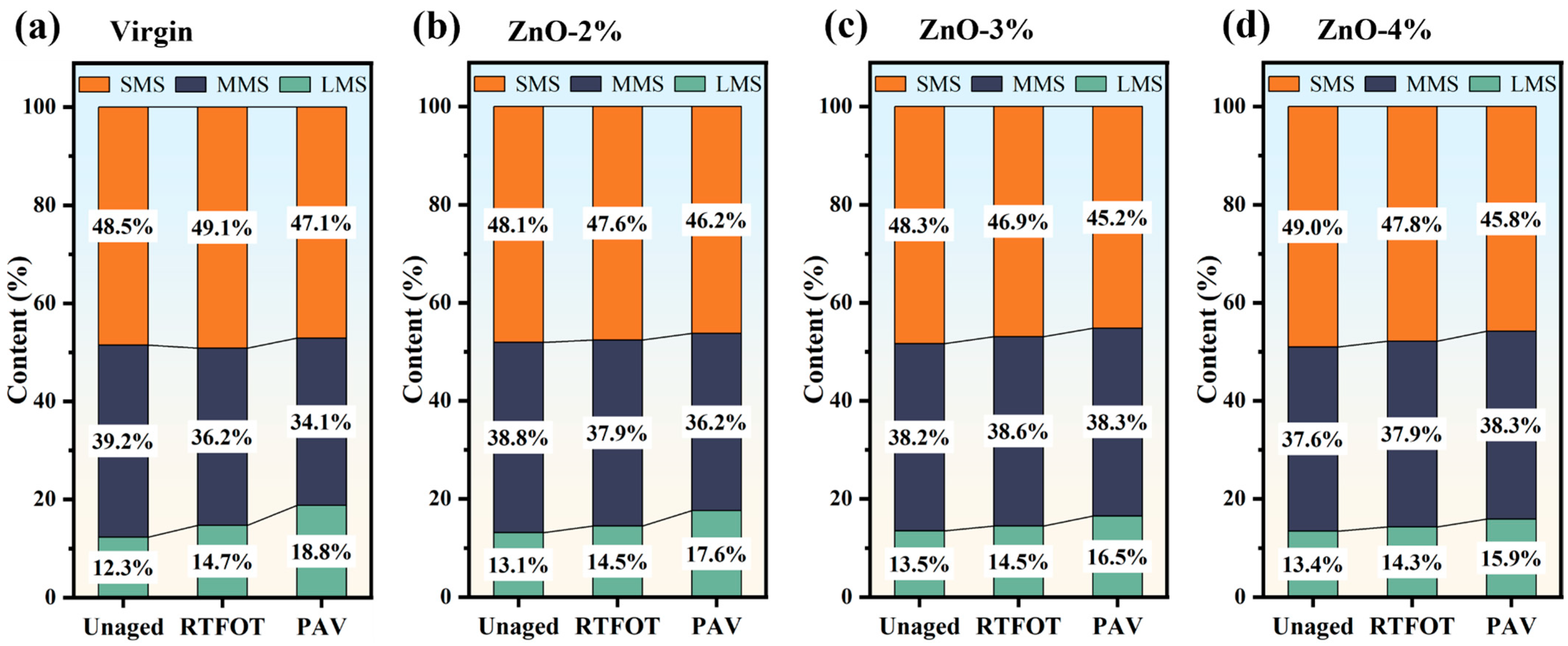 Chicago/Turabian StyleAn, Baifu, Yang Shen, Jianan Liu, Junmeng Li, Haosen Jing, and Shisong Ren. 2025. "Anti-Aging Effect of Nano-ZnO on Asphalt: Chemo-Rheological Behavior, Molecular Size Evolution of Polymers, and Nanoscale Parameters" Polymers 17, no. 20: 2774. https://doi.org/10.3390/polym17202774