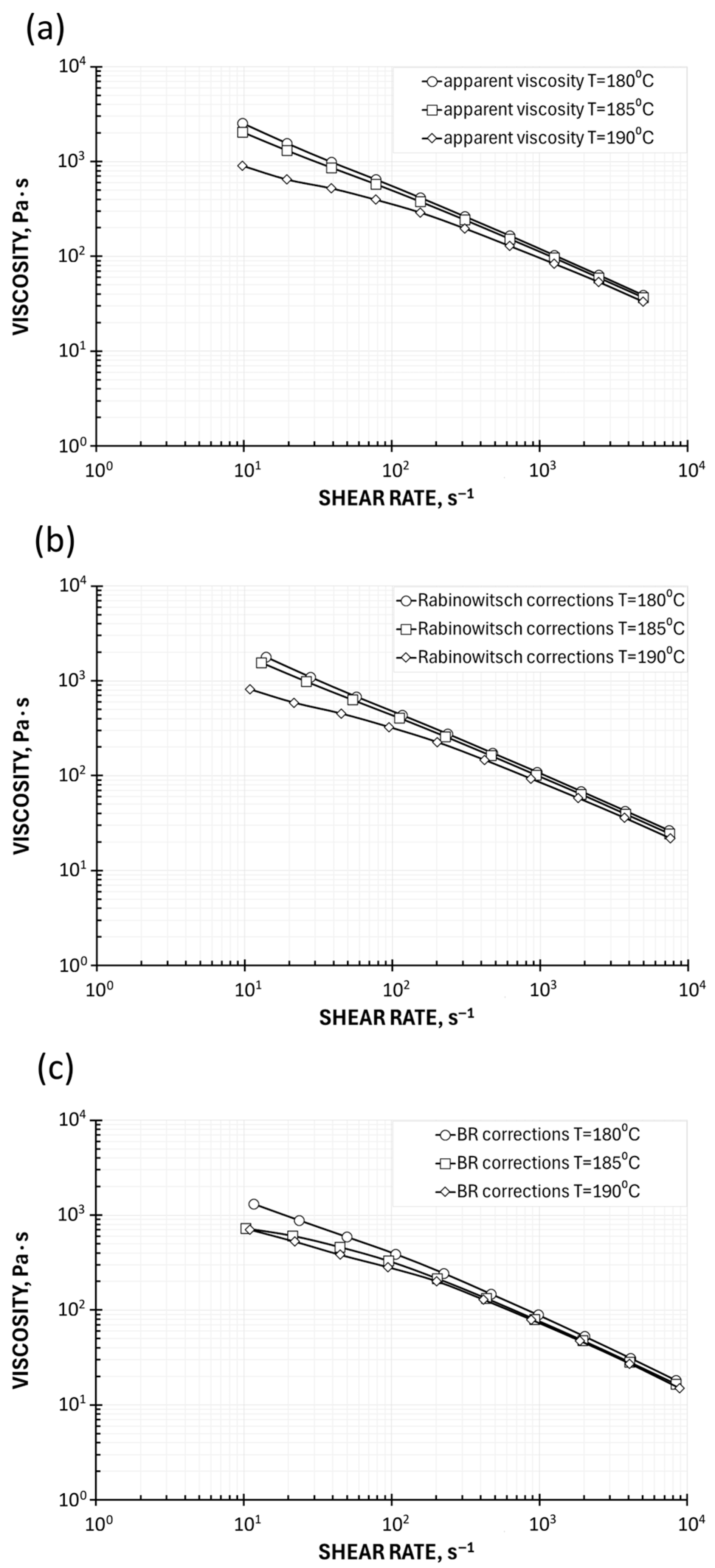 5.1.1. Determination of Viscosity Based on High-Pressure Capillary Rheometry (HPCR)