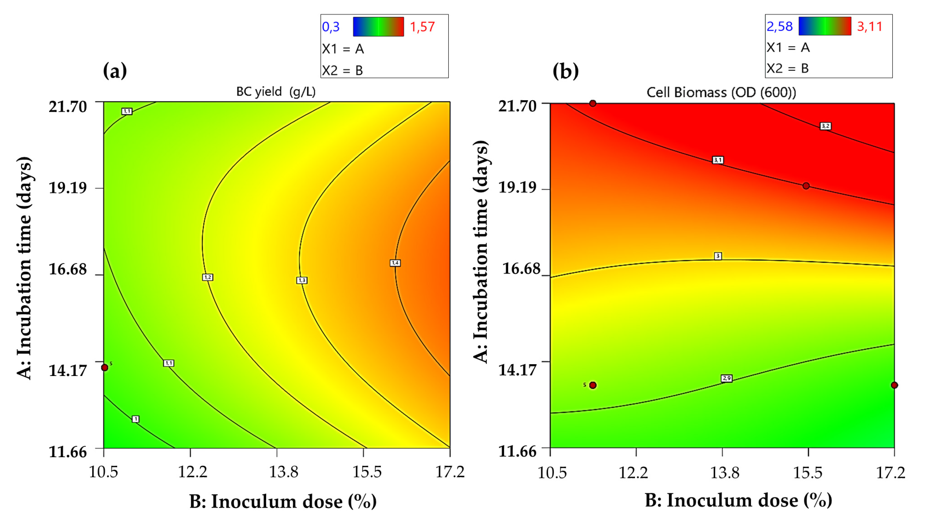 | Response | BC (g/L) | Cell Biomass (OD600) | ||||