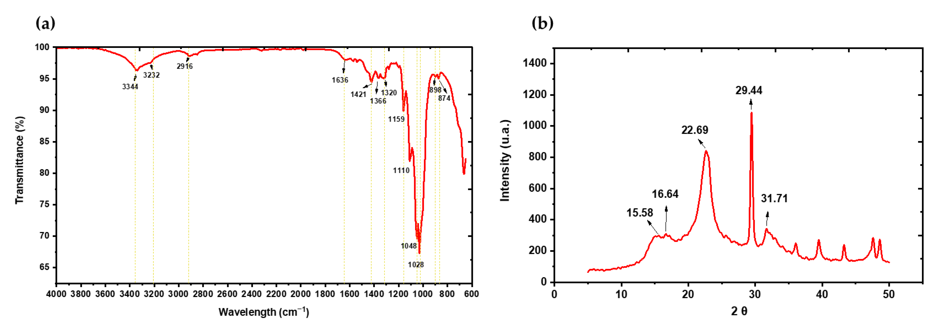 - Biswas, S.; Rahaman, T.; Gupta, P.; Mitra, R.; Dutta, S.; Kharlyngdoh, E.; Guha, S.; Ganguly, J.; Pal, A.; Das, M. Cellulose and lignin profiling in seven, economically important bamboo species of India by anatomical, biochemical, FTIR spectroscopy and thermogravimetric analysis. Biomass Bioenergy 2022, 158, 106362. [Google Scholar] [CrossRef]