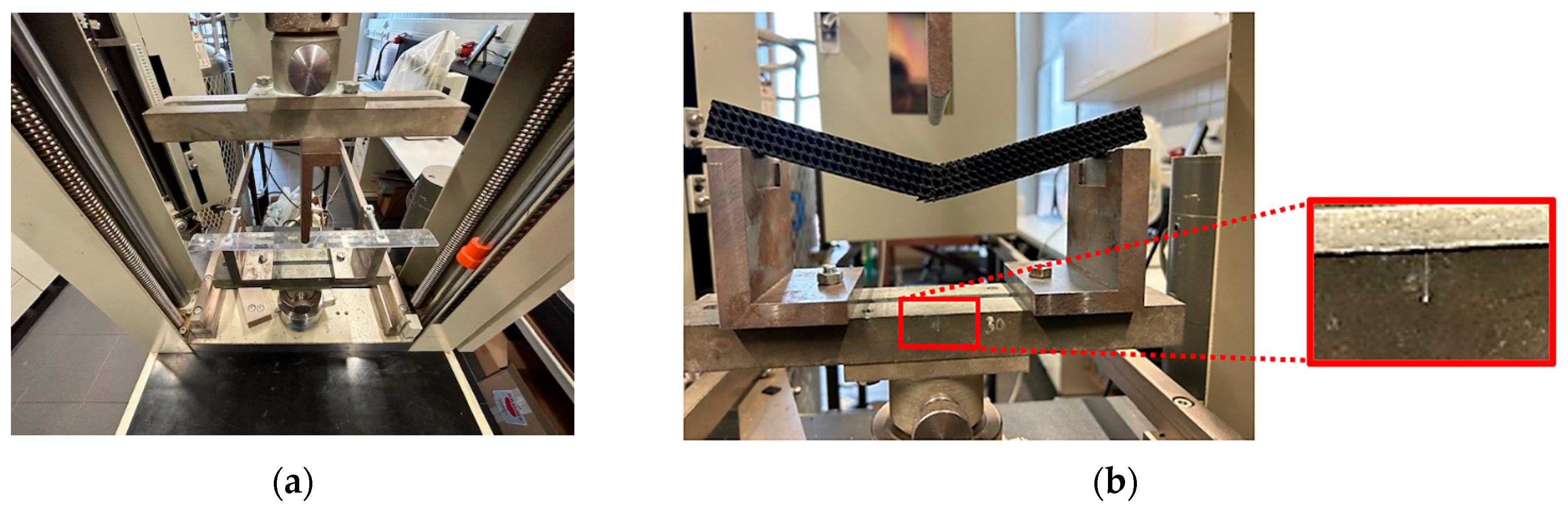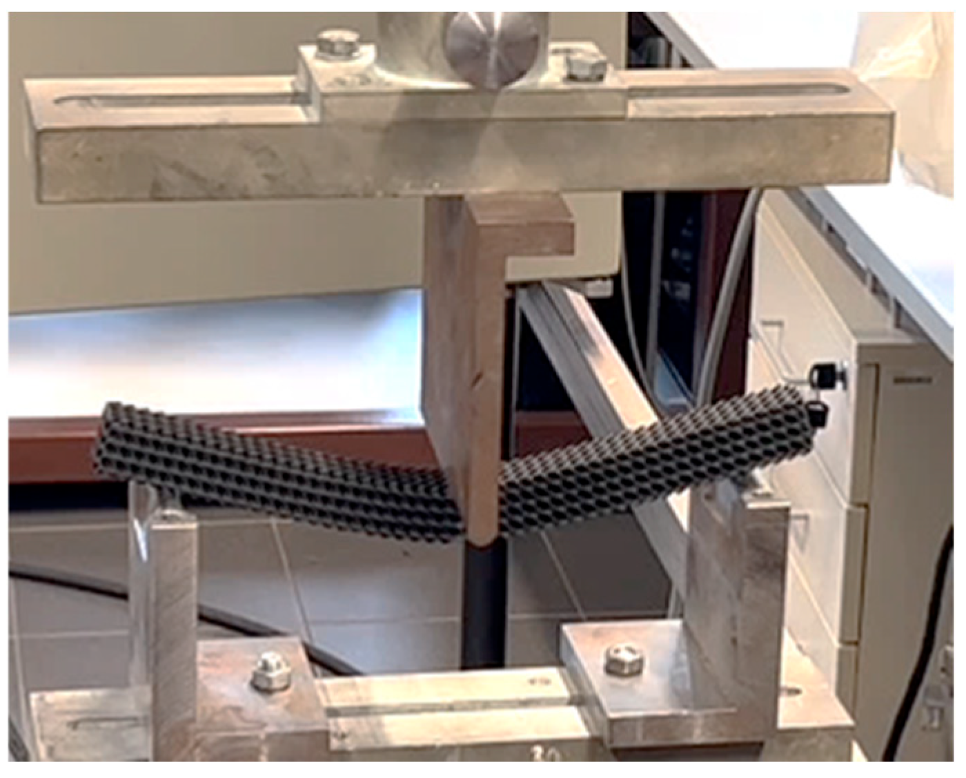 - Zhou, Q.; Xu, Z.; Cui, Y.; Wang, K.; Wang, B.; Wang, B. Evaluations of three-point bending and energy absorption performances of novel auxetic honeycomb circular tubes under different impact loading. Constr. Build. Mater. 2025, 475, 141132. [Google Scholar] [CrossRef]
