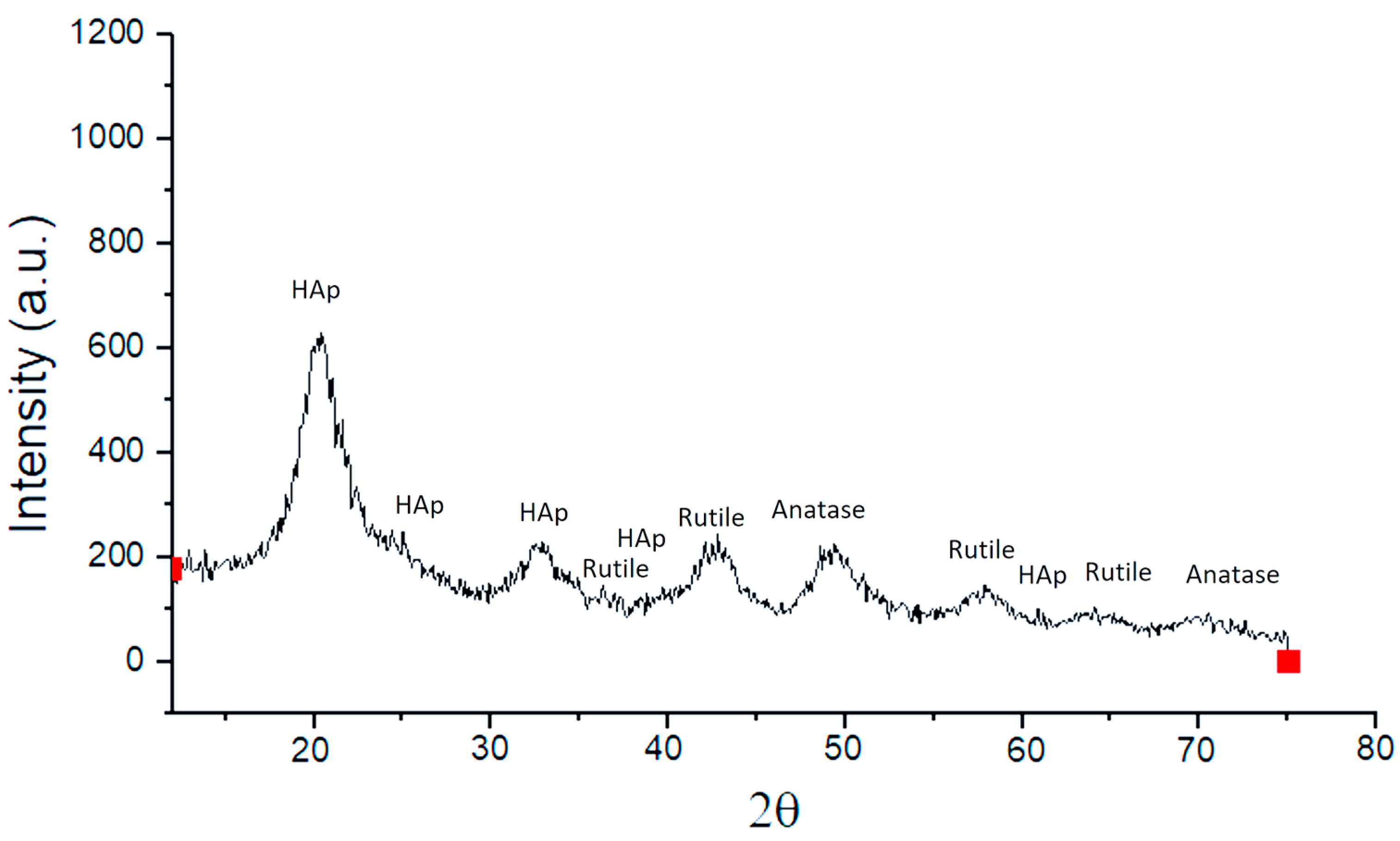 - Vemulapalli, A.K.; Penmetsa, R.M.R.; Nallu, R.; Siriyala, R. HAp/TiO2 nanocomposites: Influence of TiO2 on microstructure and mechanical properties. J. Compos. Mater. 2020, 54, 765–772. [Google Scholar] [CrossRef]