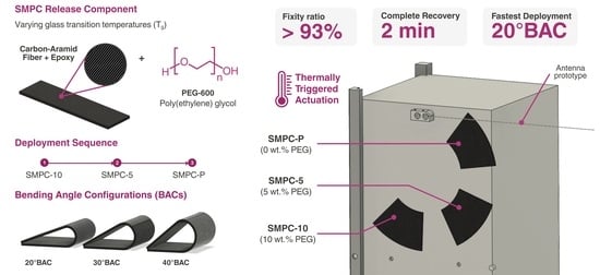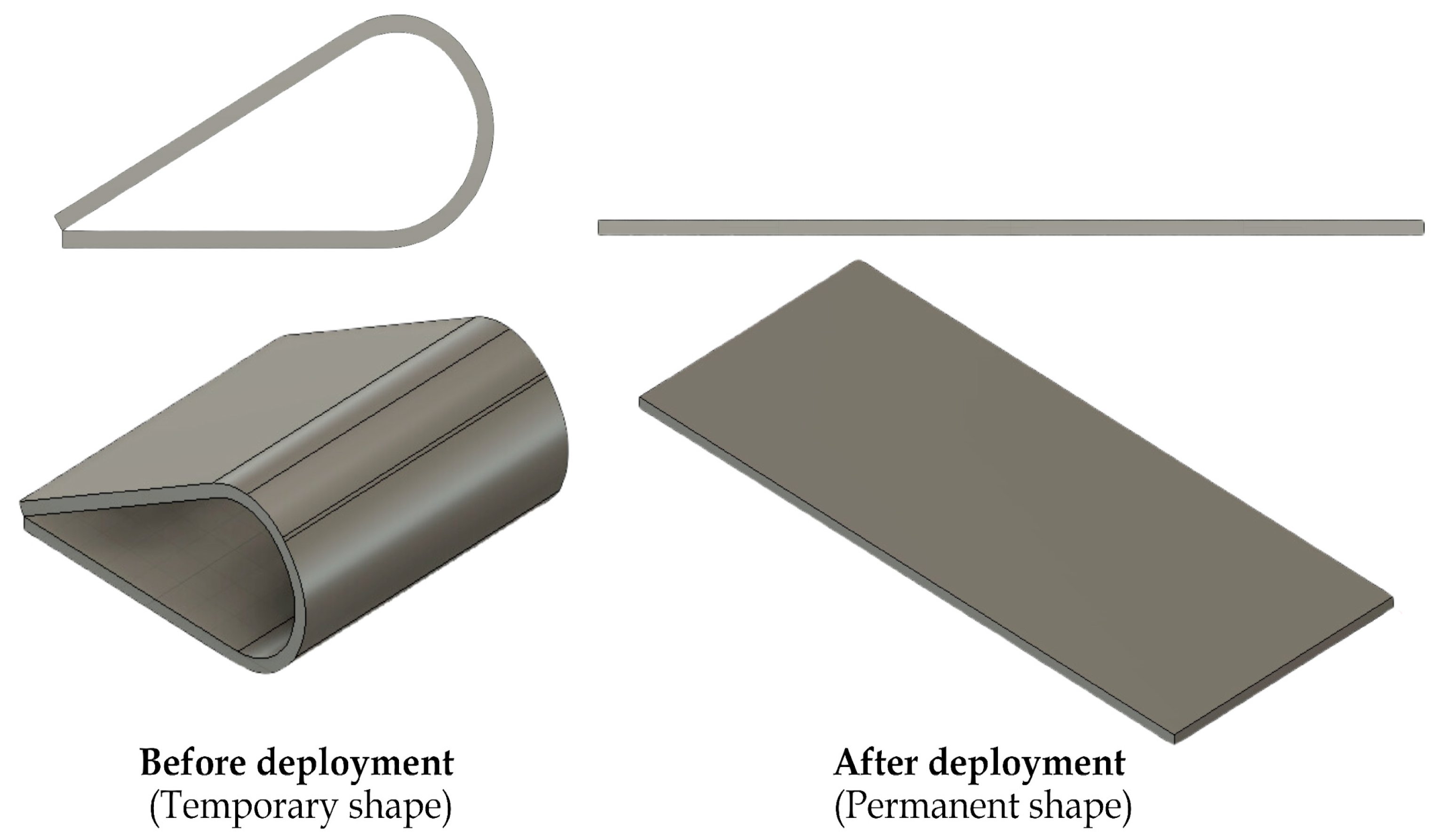 - Jing, X.; Wei, J.; Liu, Y.; Song, B.; Liu, Y. Deployment Analysis of Aramid Fiber Reinforced Shape-Memory Epoxy Resin Composites. Eng. Sci. 2020, 11, 44–53. [Google Scholar] [CrossRef]