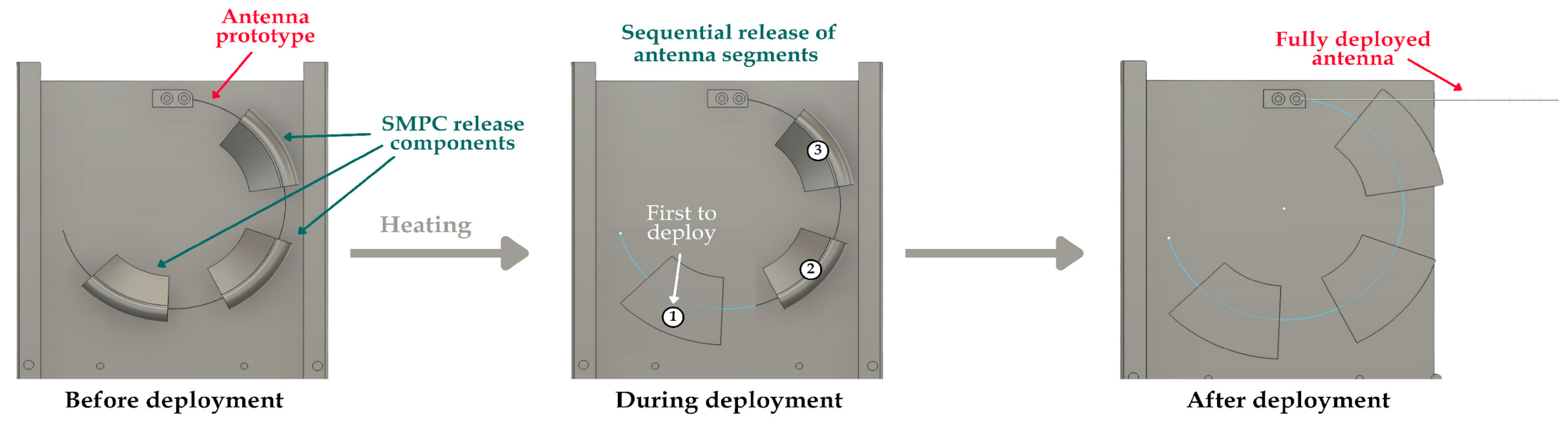 Development and Feasibility Assessment of a Sequential Antenna Deployment System Based on Fiber-Reinforced Shape Memory Polymer Composites