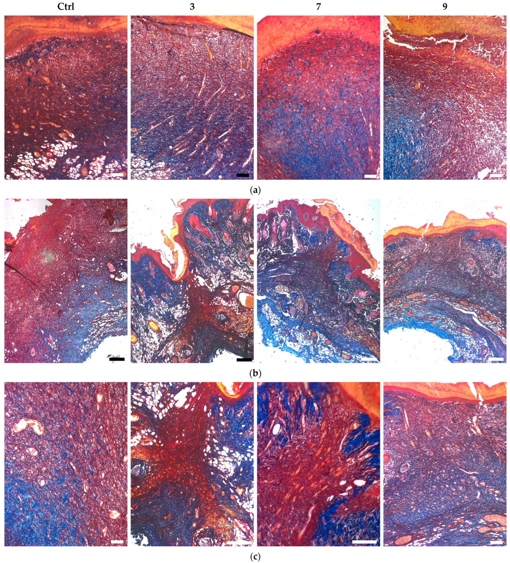 - Gross, J.; Farinelli, W.; Sadow, P.; Anderson, R.; Bruns, R. On the mechanism of skin wound” contraction”: A granulation tissue” knockout” with a normal phenotype. Proc. Natl. Acad. Sci. USA 1995, 92, 5982–5986. [Google Scholar] [CrossRef] [PubMed]
