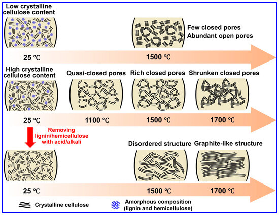 Investigating the contributions of lignin, cellulose, and hemicellulose to the development of closed-pore structures. Adapted from [45]. Copyright 2023, Springer Nature.