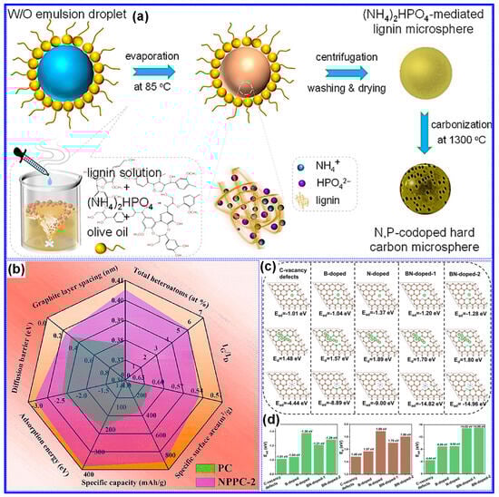 - Zhang, J.; Duan, J.Y.; Zhang, Y.; Chen, M.M.; Ji, K.M.; Wang, C.Y. Facile Synthesis of N,P-codoped Hard Carbon Nanoporous Microspheres from Lignin for High-Performance Anodes of Sodium-Ion Batteries. ChemElectroChem 2021, 8, 3544–3552. [Google Scholar] [CrossRef]