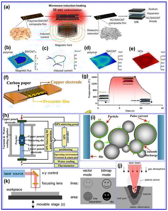 - Ryoo, G.B.; Shin, J.; Kim, B.G.; Lee, D.G.; Han, J.T.; Park, B.; Oh, Y.S.; Jeong, S.Y.; Lee, S.H.; Lee, D.Y.; et al. Sub-minute carbonization of polymer/carbon nanotube films by microwave induction heating for ultrafast preparation of hard carbon anodes for sodium-ion batteries. Chem. Eng. J. 2024, 496, 154081. [Google Scholar] [CrossRef]