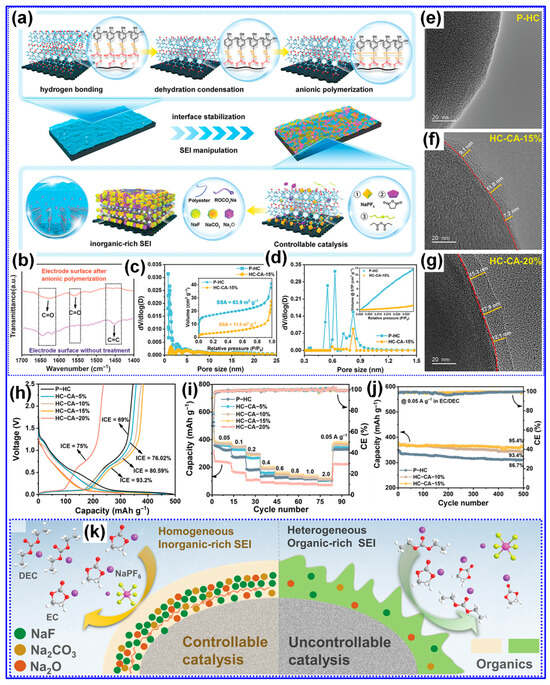 - Yu, C.X.; Li, Y.; Ren, H.X.; Qian, J.; Wang, S.; Feng, X.; Liu, M.Q.; Bai, Y.; Wu, C. Engineering homotype heterojunctions in hard carbon to induce stable solid electrolyte interfaces for sodium-ion batteries. Carbon Energy 2023, 5, e220. [Google Scholar] [CrossRef]