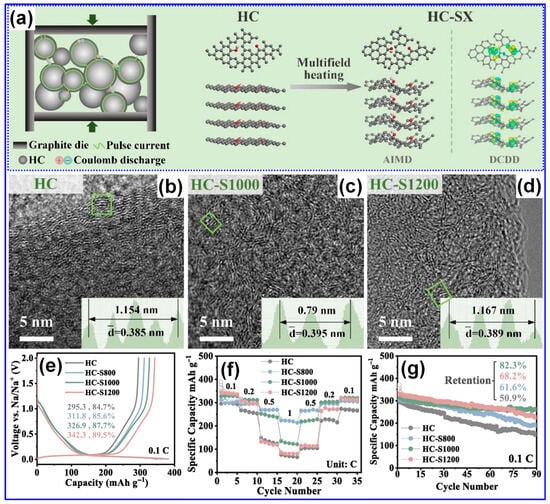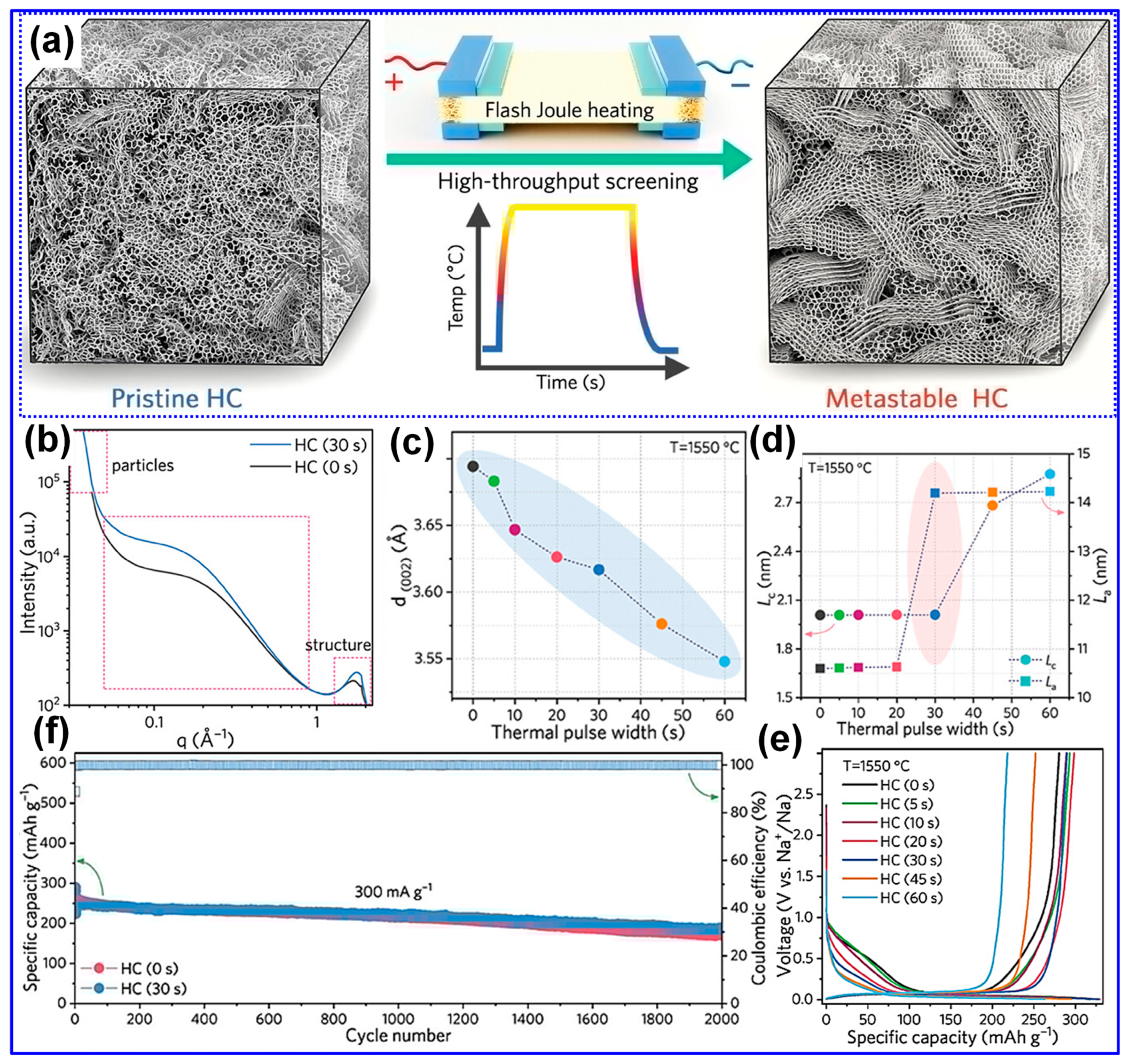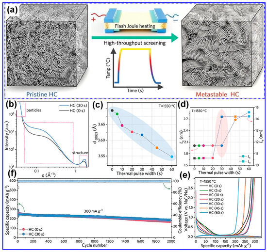 - Song, Z.; Du, Q.; Chen, J.; Huang, J.; Chen, Y.; Zheng, L.; Huang, Z.; Dai, H.; Hong, Z.S. Joule heating for structure reconstruction of hard carbon with superior sodium ion storage performance. Chem. Eng. J. 2024, 496, 154103. [Google Scholar] [CrossRef]
