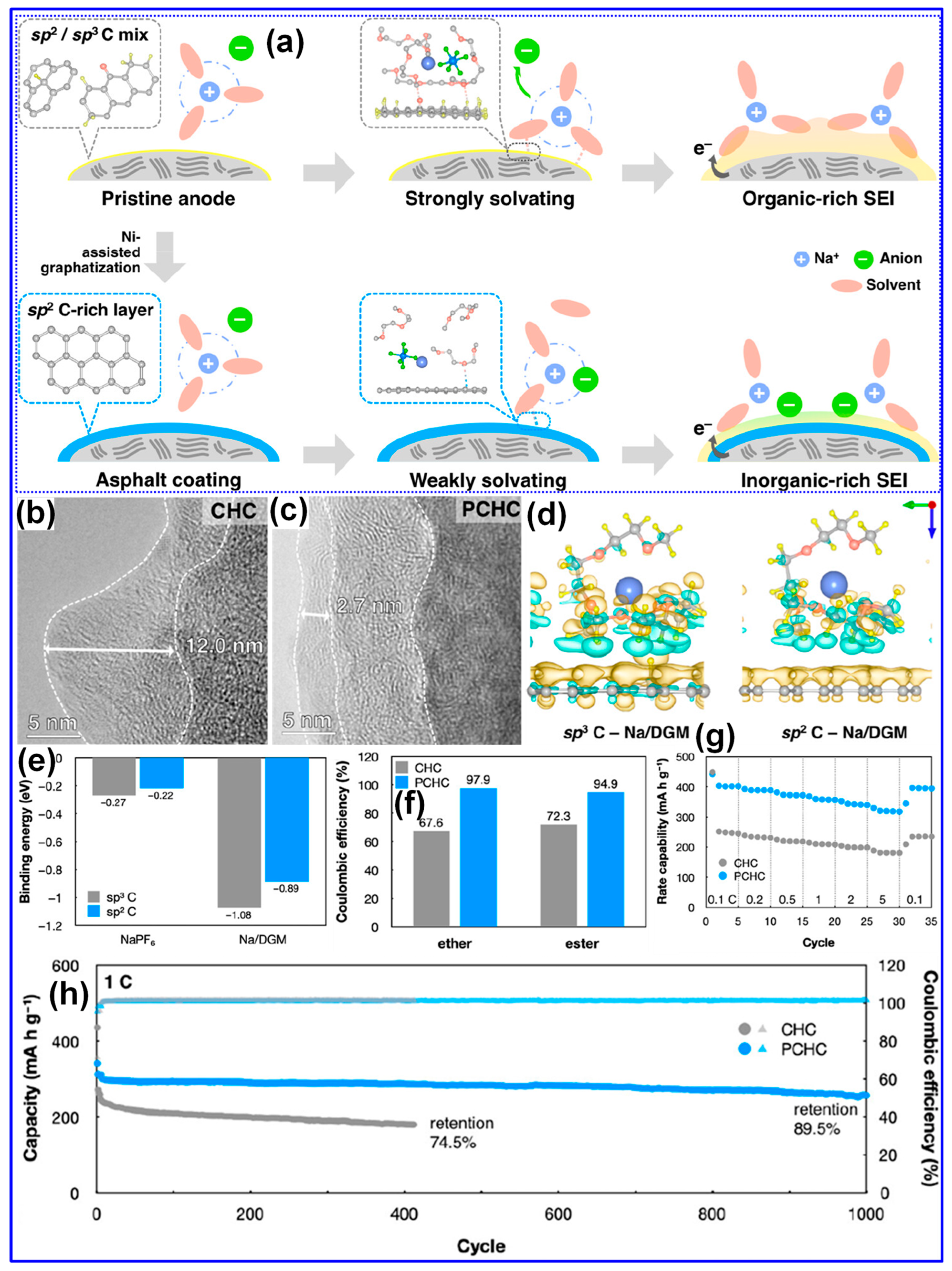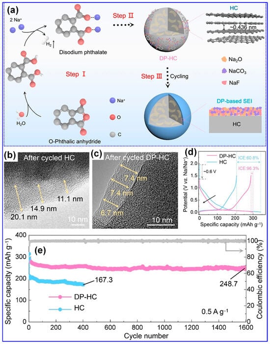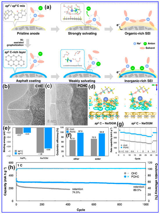 - Zhao, S.W.; Huang, F.Q. Weakly Solvating Few-Layer-Carbon Interface toward High Initial Coulombic Efficiency and Cyclability Hard Carbon Anodes. ACS Nano 2024, 18, 1733–1743. [Google Scholar] [CrossRef] [PubMed]