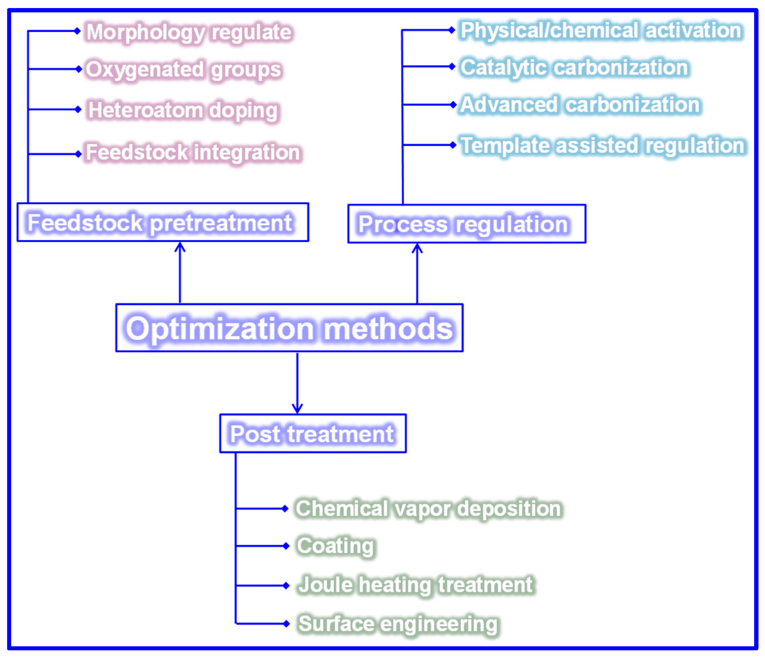- Feedstock integration represents a promising pathway for the scalable synthesis of LHCs that exhibit a balanced suite of electrochemical properties. For practical implementation, LHCs must combine high specific capacity, extended cycle life, elevated ICE, favorable rate performance, and cost-effectiveness. However, achieving these targets concurrently is inherently challenging, as prevailing optimization techniques, such as pre-oxidation, activation, and surface engineering, tend to improve individual attributes while compromising others. Accordingly, it is imperative to develop approaches that enhance multiple performance parameters in concert. Feedstock integration, which entails the co-processing of lignin with other carbonaceous materials to produce heterogeneous HCs, can deliver synergistic benefits without sacrificing process simplicity or compatibility with existing industrial infrastructure. To fully realize this strategy’s potential, careful co-feedstock selection and comprehensive investigations into the synergistic effects and governing mechanisms are essential.